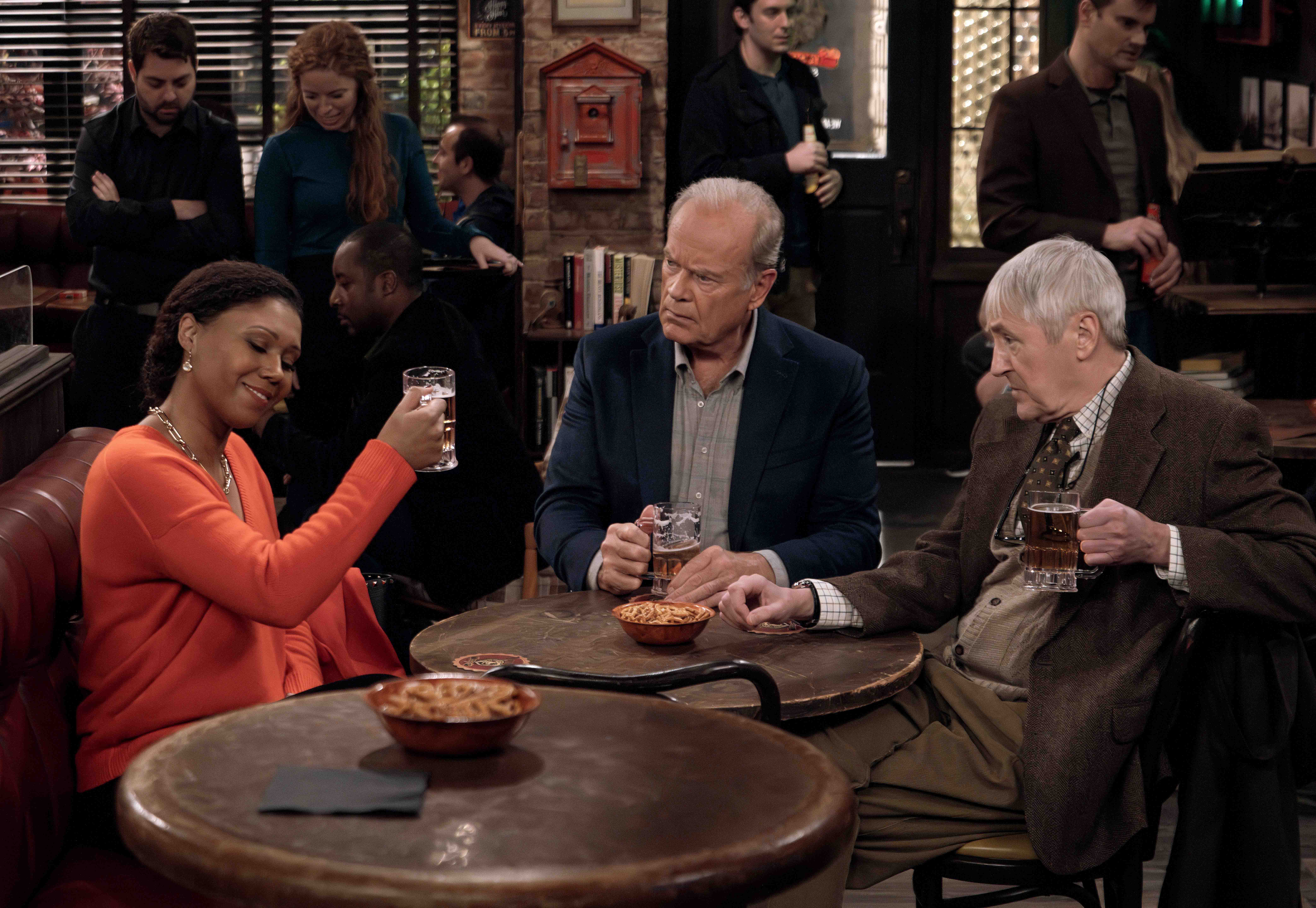 Kelsey Grammer returns as the title character, alongside Jack Cutmore-Scott as Frasier’s son Freddy; Nicholas Lyndhurst as Frasier’s old college friend turned university professor Alan; Toks Olagundoye as Olivia, Alan’s colleague and head of the university’s psychology department; Jess Salgueiro as Freddy’s roommate Eve; and Anders Keith as Frasier’s nephew David.